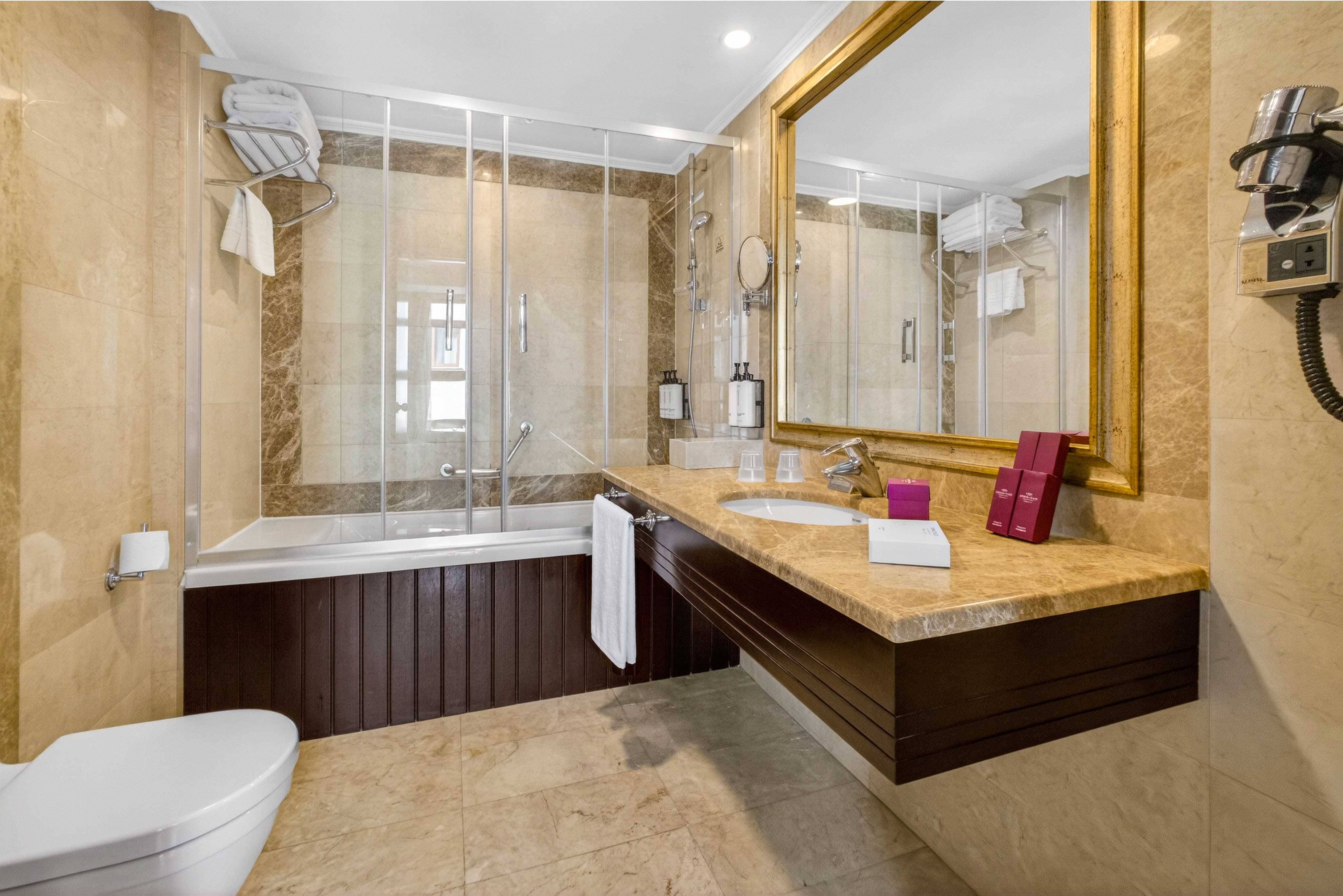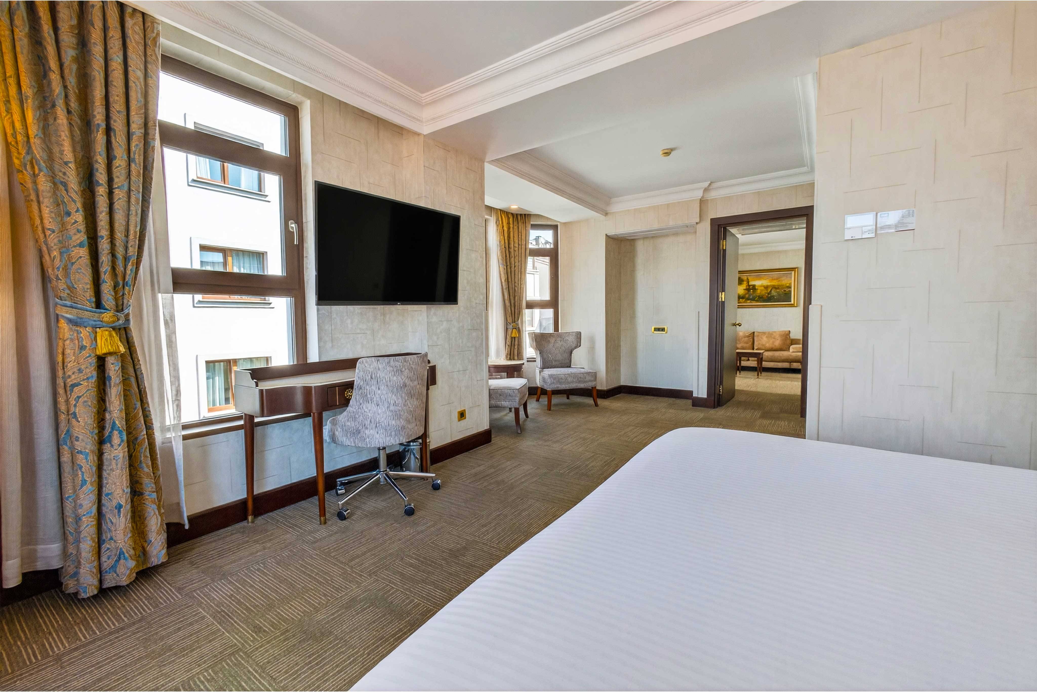 Executive Süitler 44-50 m²'dir ve düz ekran TV, klima, çalışma masası, koltuk ve minibar ile dekore edilmiş zarif odanızda kaz tüyü yataklarımızda çalışabilir veya günün stresini atabilirsiniz. Anti-alerjik halılarımız size ferah bir nefes sunacak ve ücretsiz Wi-Fi internet bağlantımız sevdiklerinizle bağlantı kurmanızı sağlayacaktır. Size Bvlgari Banyo malzemeleri ile lüks bir konaklama sunuyoruz. Tüm Executive Süitlerde Club Lounge erişimi mevcuttur.