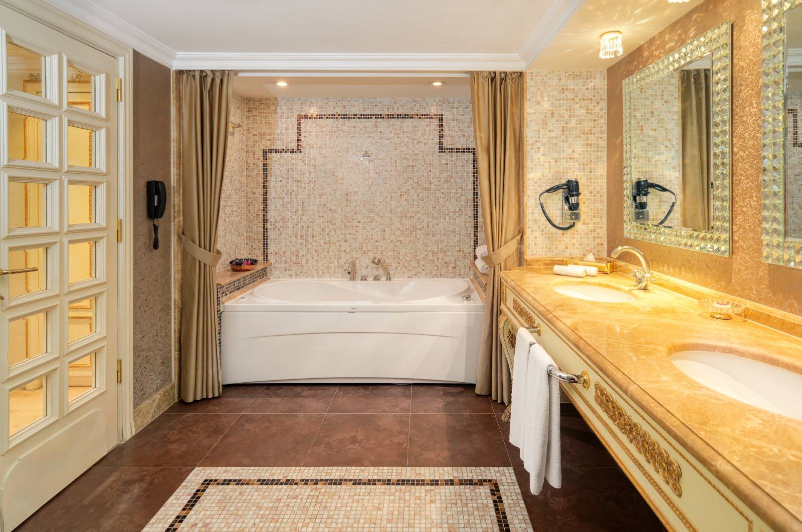 WiFi ve süitinizden uzaktan yazdırma olanağı sunan geniş çalışma istasyonunda işinize odaklanın. Olanaklar arasında espresso makinesi, değerli eşyalarınız için kasa ve minibar bulunmaktadır. Bornoz, terlik ve lüks banyo ve vücut ürünleriyle büyük banyolarda ferahlayın.